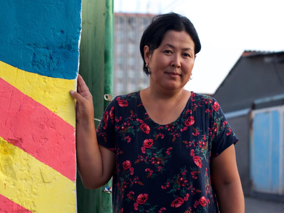 She lives in Zavadskoy Paselok, a slum of Bishkek, Kyrgyzstan. The neighbourhood is inhabited by different ethnic groups from Kyrgyzstan and Central Asia but people live in peace and harmony.