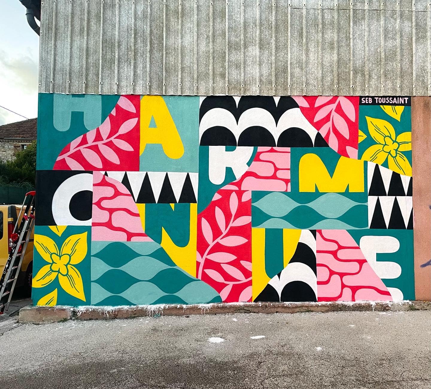 It’s the result of a project with the Microfolie @polinno_pepitart_et_fablab where a group of locals chose a word to paint on the wall and helped create patterns to illustrate the landscape of Ardèche.