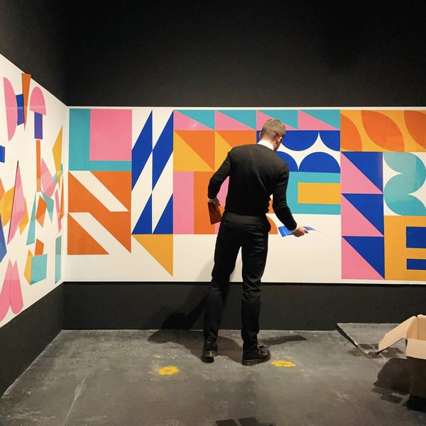 The idea is to let the people create their own mural with the simple geometrical shapes I use in my work. The shapes’ sides are multiples of 9 cm to make it easy to combine different shapes to create more complexe ones.
