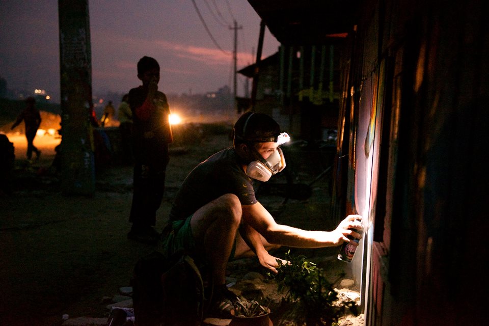 After years of intense traveling and outdoor painting with his friend Spag, a Norman photographer, the two young artists start working on their new idea: “Share The Word Project”. The aim is to paint murals in low income neighbourhoods and refugee camps, each mural containing a word chosen by the owners of the wall.