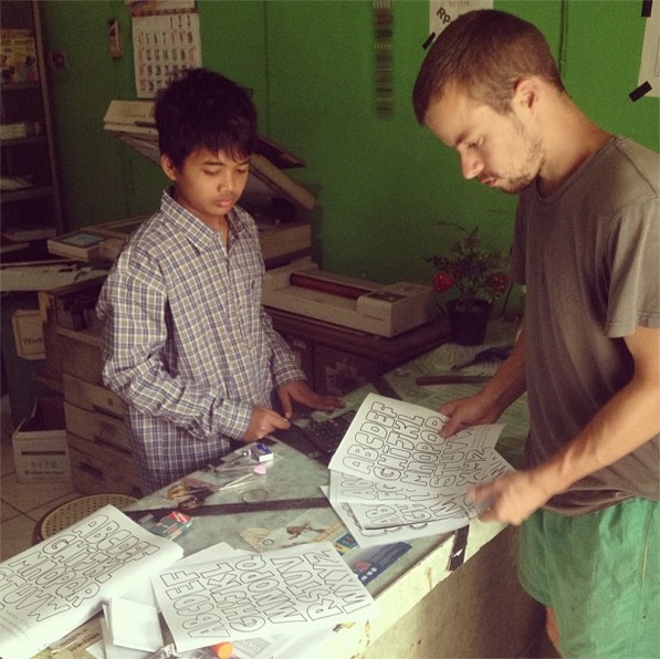 Teaching Kids Graffiti! September 9, 2013 Seb Toussaint1 Comment Part of the project in Jakarta was also to get the kids drawing and painting. We bought them chalk and taught them a few basics of graffiti through booklets we printed out.